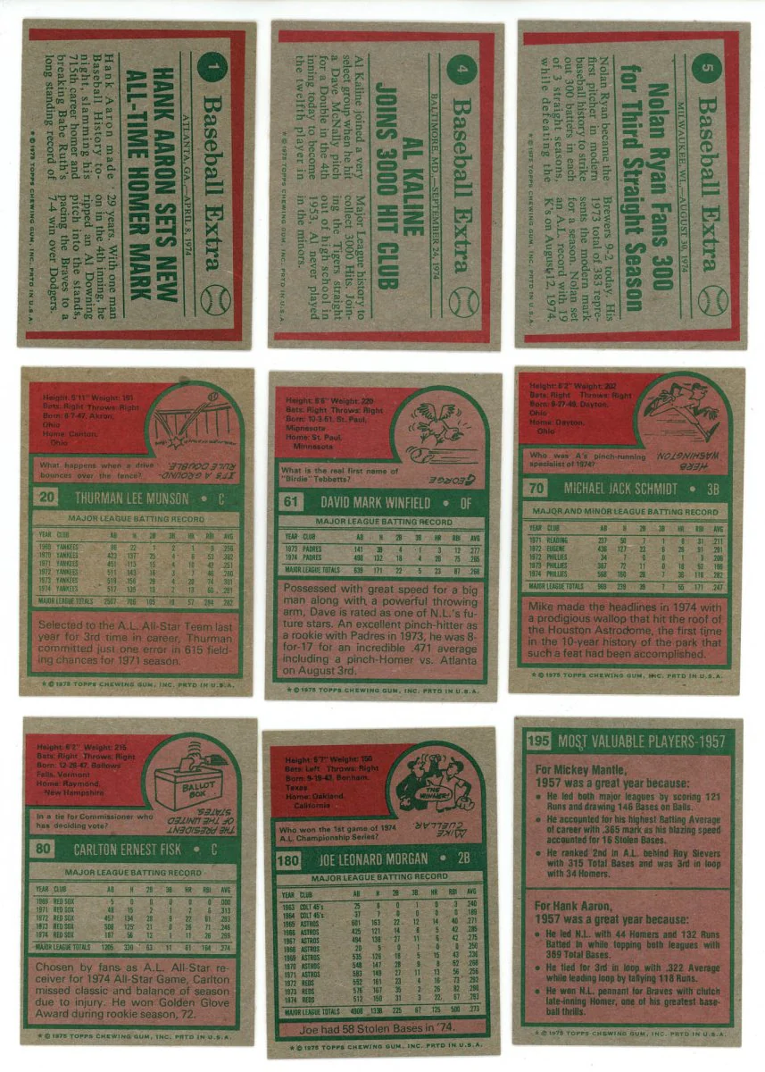 Each 1975 Topps Baseball Complete Set Break Box will have 15 Cards, including 1 (or more) Hall of Famer*!